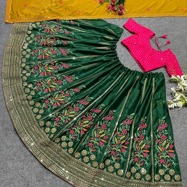 Green Colour Embroidered Attractive Party Wear Silk Lehenga choli has a Regular-fit and is Made From High-Grade Fabrics And Yarn.