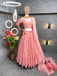 Gajri Pink Colour Embroidered Attractive Party Wear Georgette Lehenga choli has a Regular-fit and is Made From High-Grade Fabrics And Yarn.