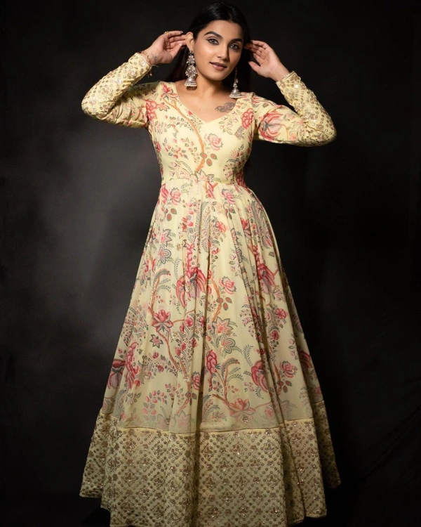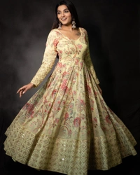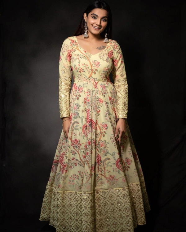 👗 GOWN FABRIC :- SILK WITH DIGITAL PRINT SLEEVES