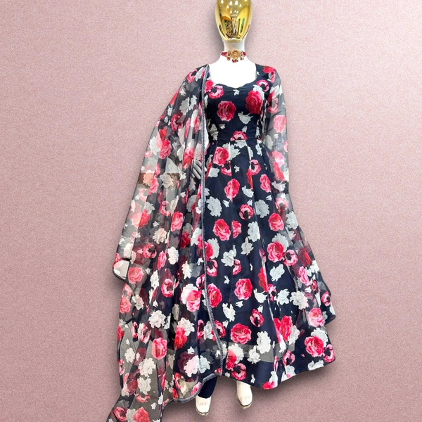 Navy Blue Colour Georgette Digital Print GOWN WITH DUPPATA
