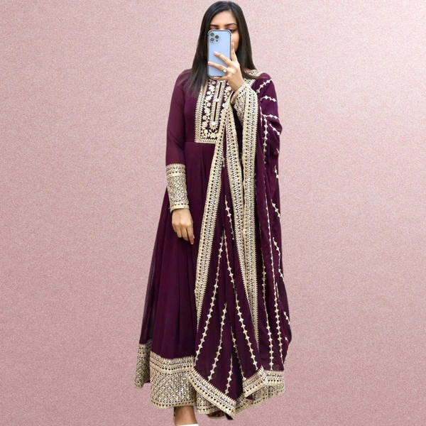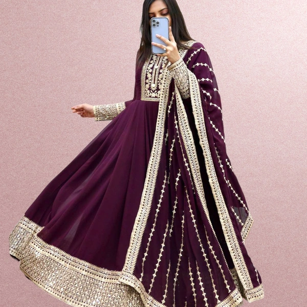 PURPLE COLOUR SIQUNCE CODING EMBROIDERY GOWN WITH DUPATTA