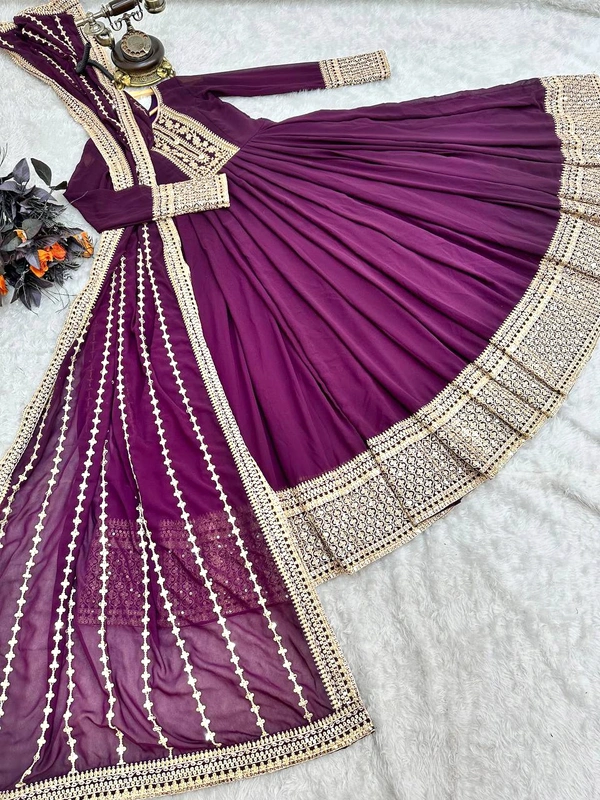 PURPLE COLOUR SIQUNCE CODING EMBROIDERY GOWN WITH DUPATTA