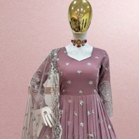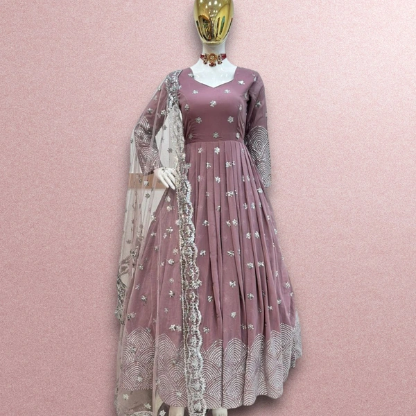 FOX GEORGETTE ONION COLOR SIQUNCE EMBROIDERY GOWN WITH DUPPATA
