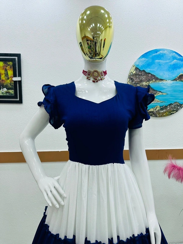 Blue And White Ruffle Gown
